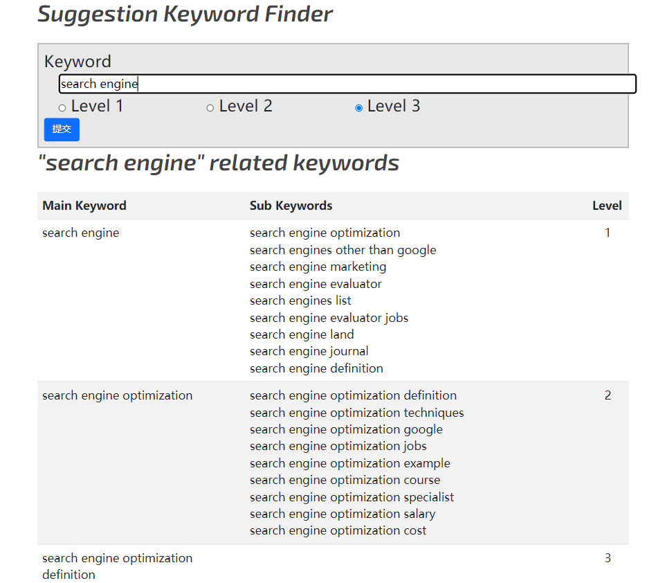 虽然你可以通过谷歌搜索框本身来做到这一点,但也可以使用一些更加便捷的工具,像是Suggestion Keyword Finde之类的工具,它可以很轻松帮您把一些关键词扩展到三级。